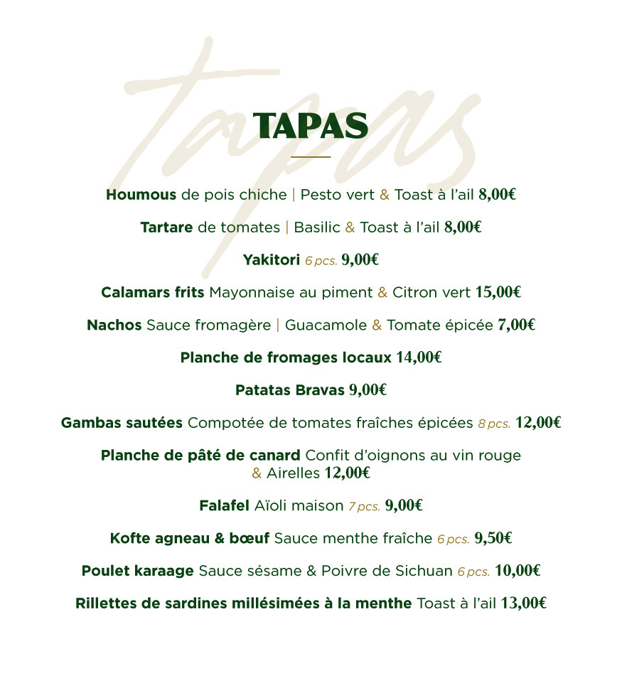 Menu Tapas